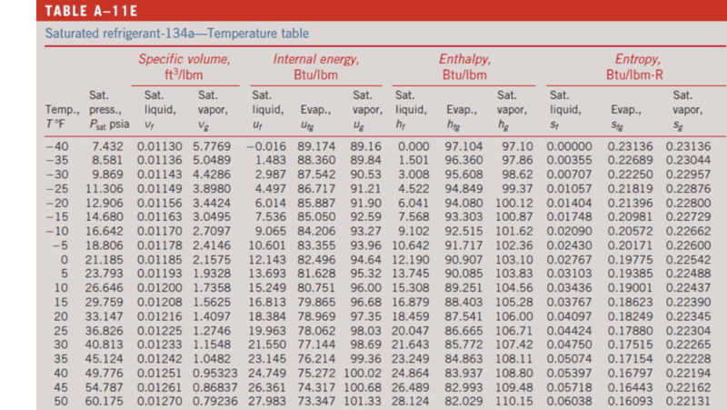 For most situations, the saturated liquid properties, identified by the subscript f, can be used with only a small error.